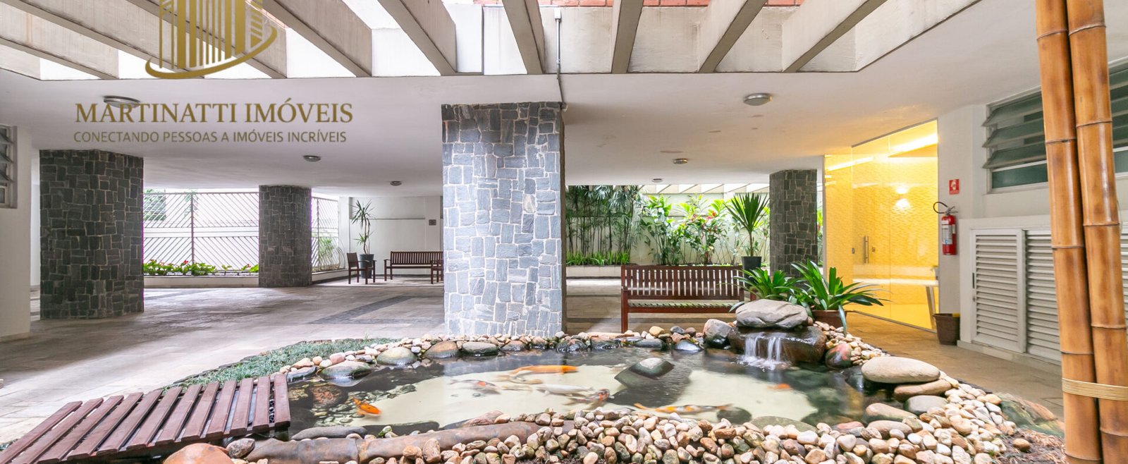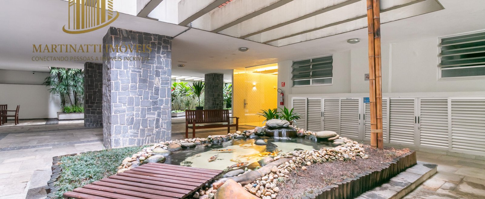 Espaço jardinado no condomínio – perfeito para relaxar ou meditar após um dia agitado.
